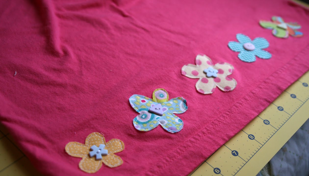 One of my favorite things to sew are t-shirts for people. I usually get the shirts at the end of summer (or winter for long sleeve) on the clearance rack at Target, Gap, etc. Some of the following are for Little Man, and others for my niece and nephew for my their birthdays. (click on images to see them bigger)