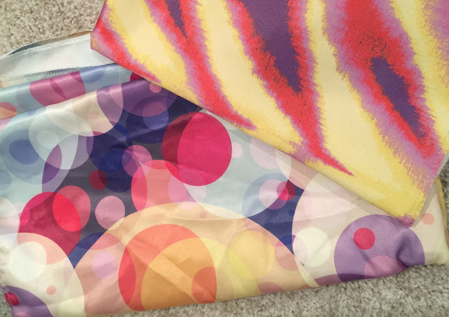 We get very pretty embroidered fabrics. Some of them are thin enough to make into bags like the ones below.
